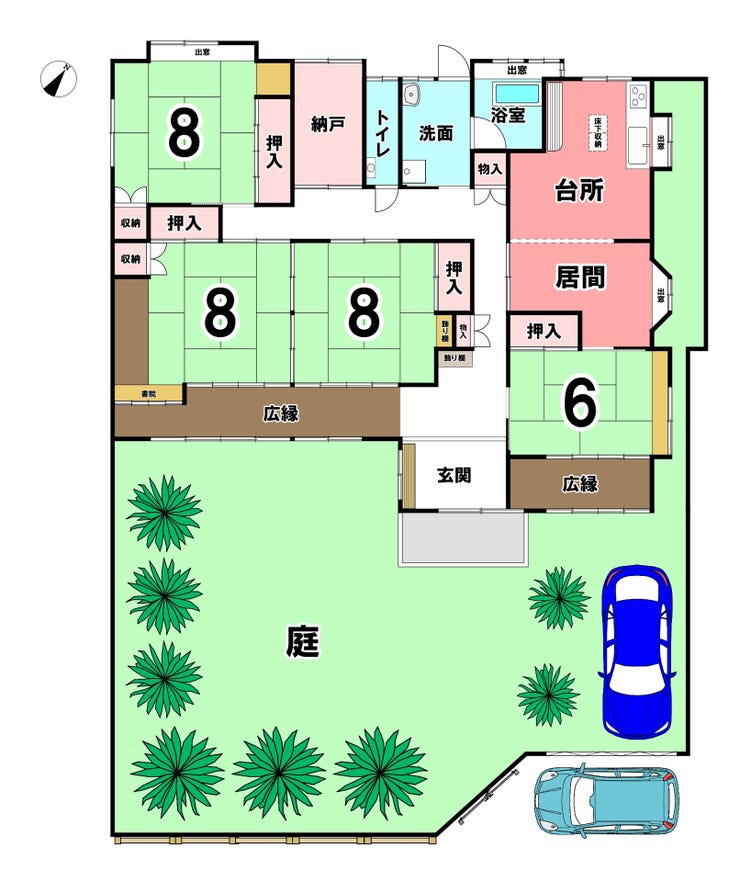 駐車場は軽自動車1台と横付けで普通車1台が停められ、前面道路幅4.5m・間口16.0mと車の出し入れも比較的スムーズです!